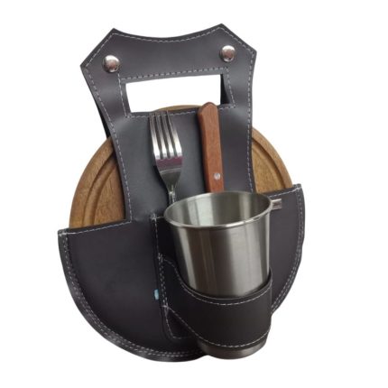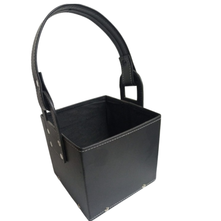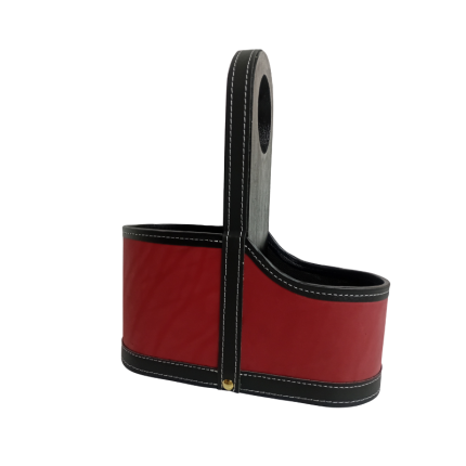 Canasta matera en ecocuero, con diseño reforzado y costuras decorativas. Práctica y elegante, perfecta para llevar mate, termo y accesorios con comodidad.